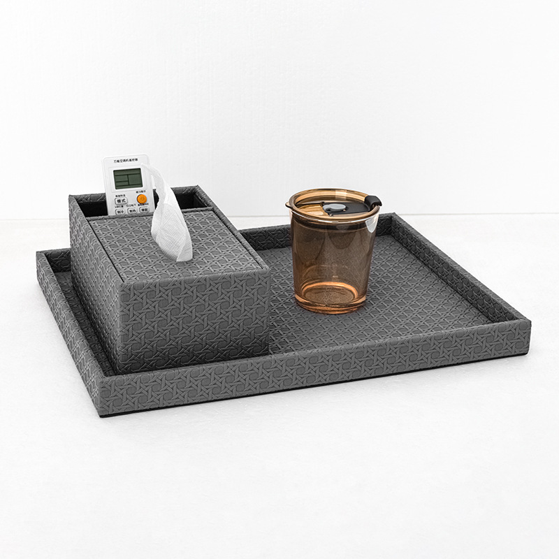 Pu皮収納ケース化粧品トレーアクセサリー展示盤編み柄デスクトップ腕時計携帯電話雑貨置物トレー