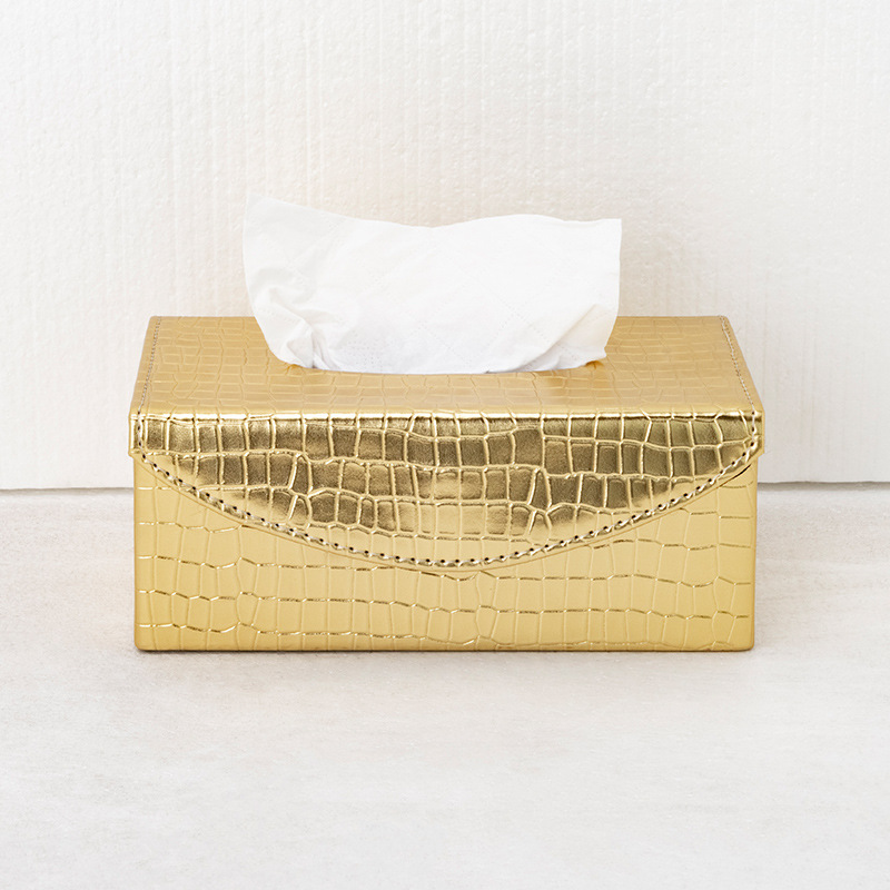 新しい金色の皮質ティッシュボックス家庭用リビングルームのお茶テーブルの引き出し箱現代シンプルなホテルPUの引き出し箱