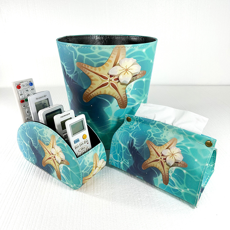 リビングリモコン革収納ボックス家庭用海洋シリーズゴミ箱収納ボックスティッシュバッグ三点セット