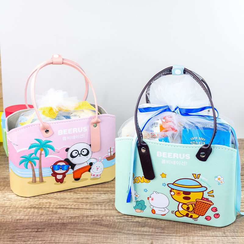 アニメかわいい百日宴お返し手提げバスケット高級皮革お土産喜糖箱結婚祝いお返しギフトボックス卸売り