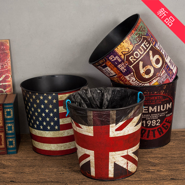 ヨーロッパのアイデア家庭用鉄製ゴミ箱トイレ円形レトロ防水収納筒客間蓋なし紙かご