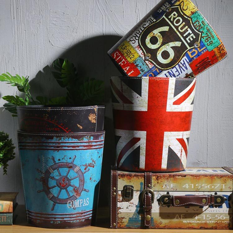 アメリカのレトロな革のゴミ箱ファッションアイデア家庭用大型蓋なし紙かごリビングバー収納ゴミ箱