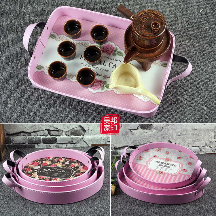 ヨーロッパ式の革のトレーのアイデアの皿の食器のコップの湯飲みのトレーの家庭用の果物の皿のシンプルな皮革の食事の皿
