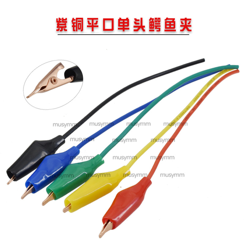 良質銅線赤黒単頭ワニクリップ線純銅平口クリップ米赤黒1線1クリップ