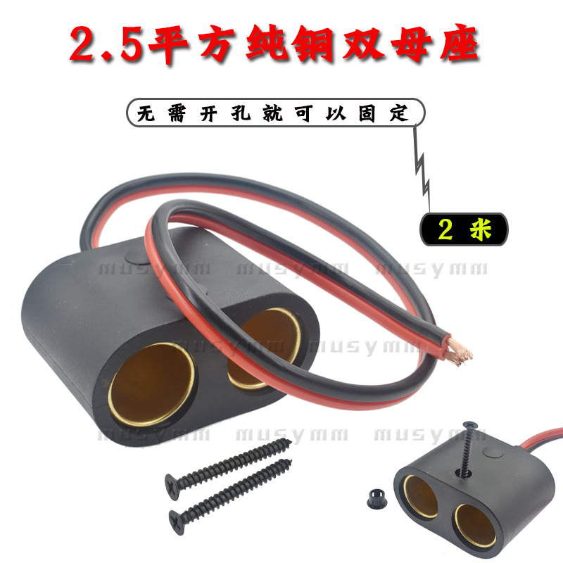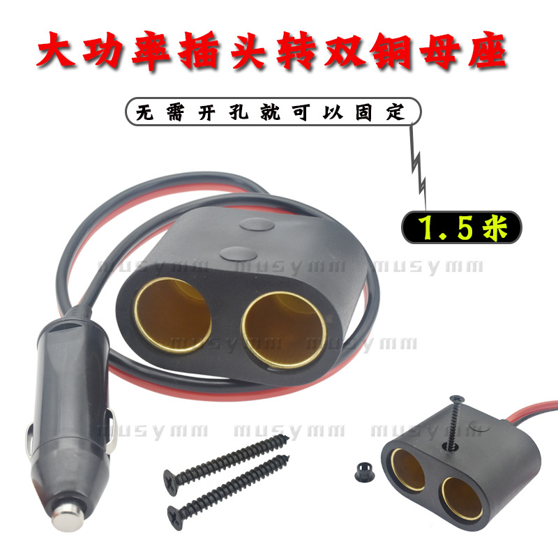 12V24Vハイパワー自動車積載シガレットソケット純銅母座一分二電源コード器熱パッド1.5メートル