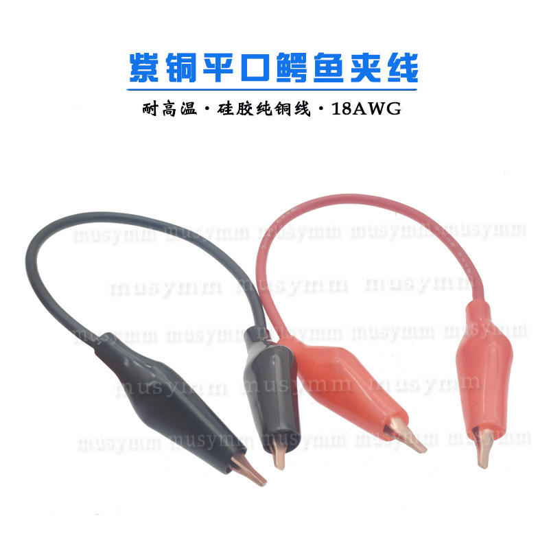 双頭紫銅トランペットワニクリップケーブル付き電源テストケーブルケーブル2線4クリップシリコン銅線純銅クリップ