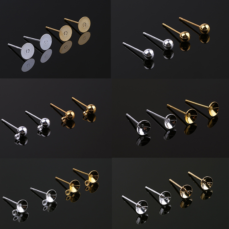 銅メッキ厚銀十字椀針刻925白銅耳針真珠托耳釘耳托部品diyイヤリング材料