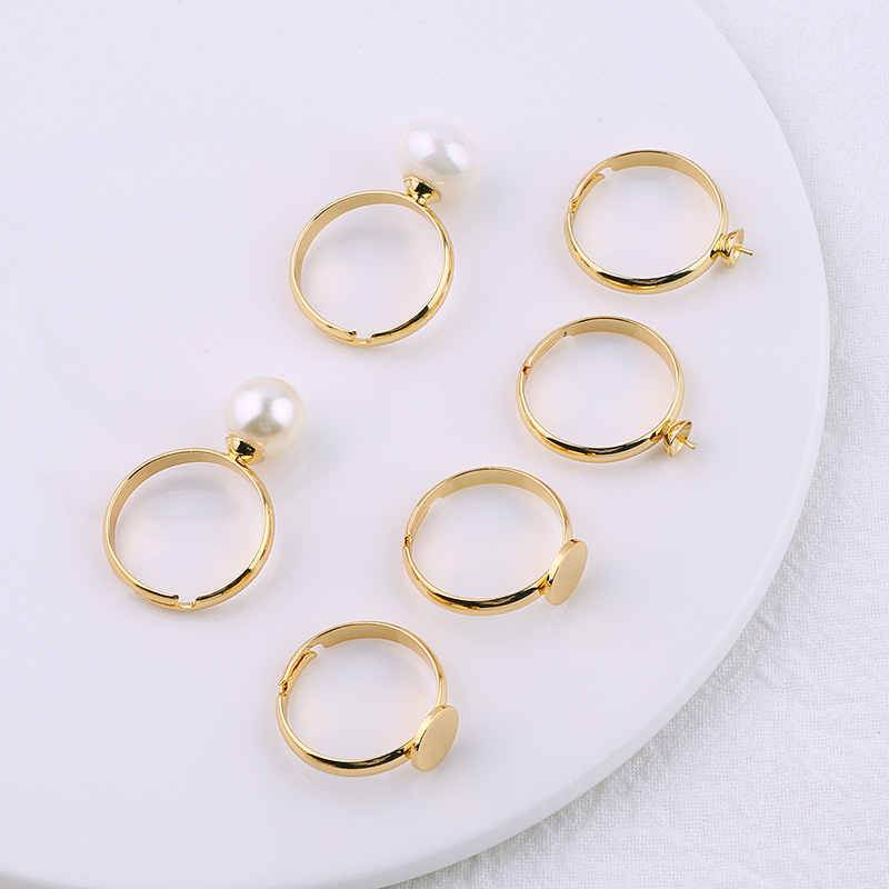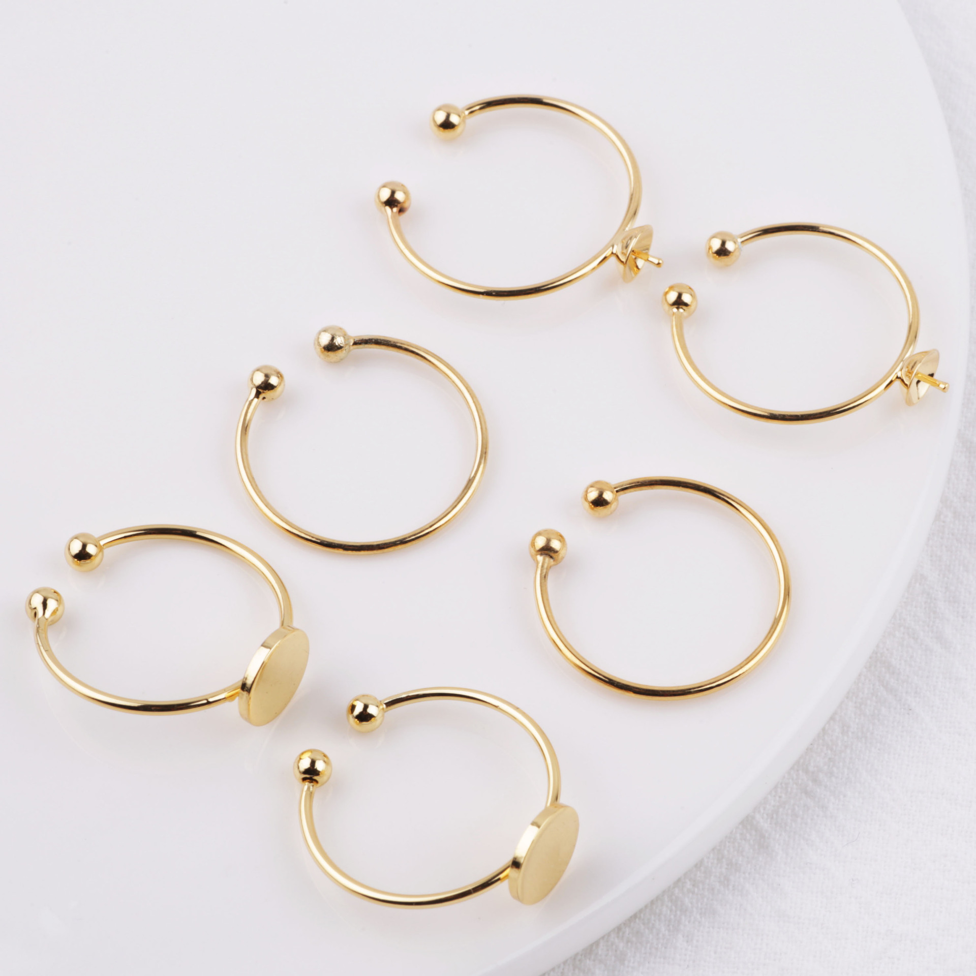 18k包みの金の保色の銅の円形のパッチの指輪は碗の針を支えて真珠のダイヤモンドの底を支えて装飾品のdiyの部品を支えます。