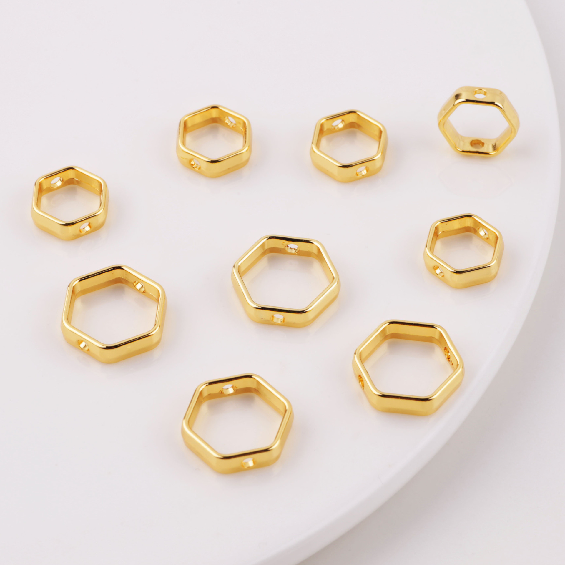 18k真金メッキ銅六角形双穴バッグビーズリングブレスレットネックレスビーズリング手作りdiyアクセサリー