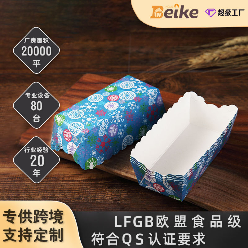 クロスボーダーの長方形の無料の型のケーキの紙はPEの膜の機械のカップを支えて高温の青い雪の模様に耐えます。