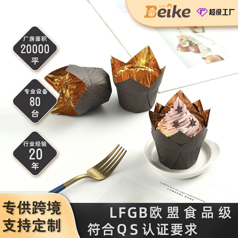 家庭用使い捨てケーキカップ防油防水箔押しケーキカップ耐高温トランペット中号マフィンカップ