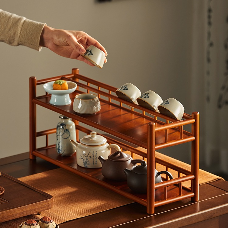 デスクトップボーグラック、小さなティーカップラック、ティーセット収納ラック、紫砂ポット収納ラック、新しい中国風の装飾品