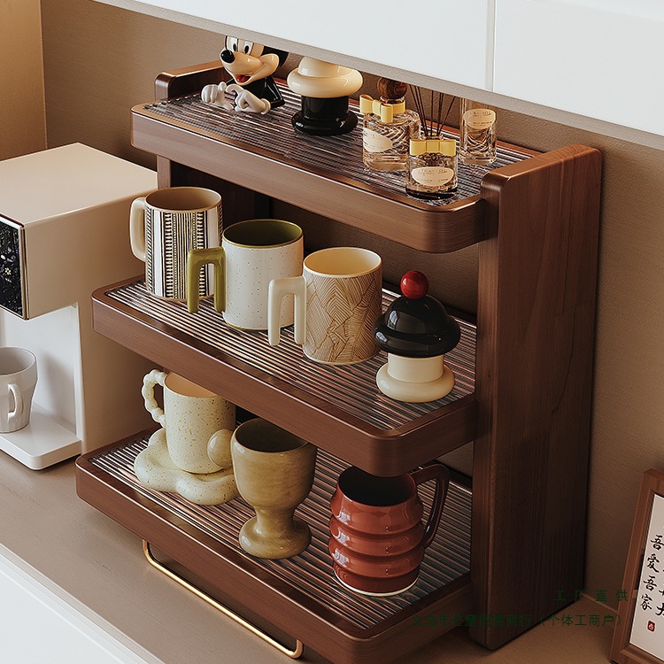 無垢材カップホルダーカウンタートップブラックウォールナットカップ収納ラックウォーターカップラックティーカップコーヒーカップデスクトップ収納ラック