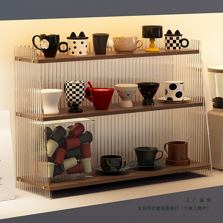 ティーカップティーセット収納ボックスデスクトップ正方形透明整理キャビネットダイニングテーブルキッチンキャビネットカップ収納ラック