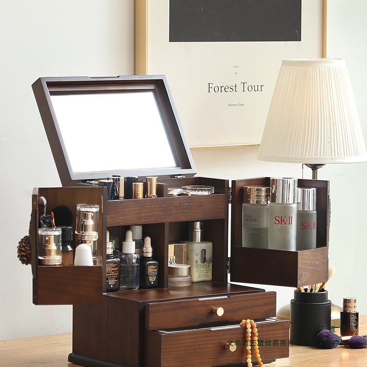 化粧品収納ボックスアクセサリーボックス一体引き出し収納キャビネット大容量木製スキンケア化粧収納ボックス