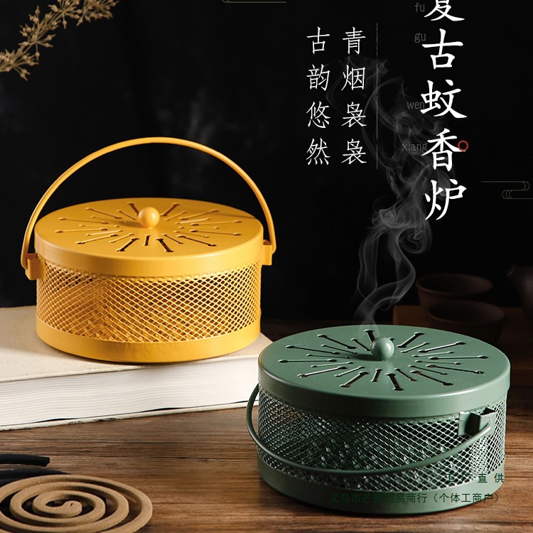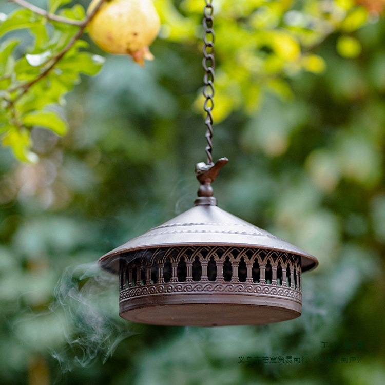 アウトドア鉄製蚊取りボックス家庭用ガーデン吊り式創意薫香炉防風蓋付き蚊取り線香トレー無