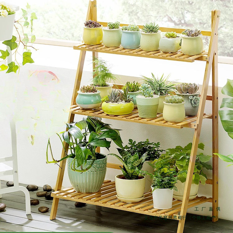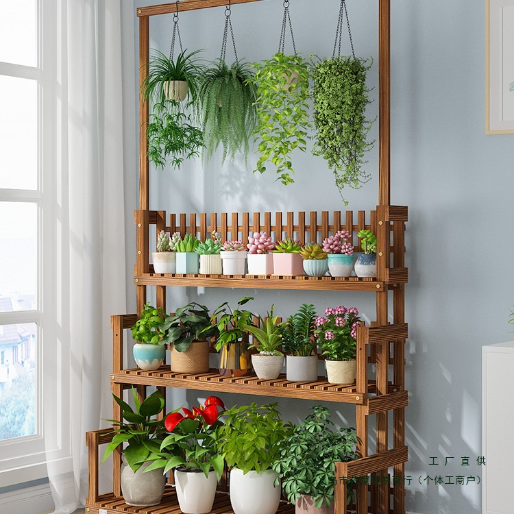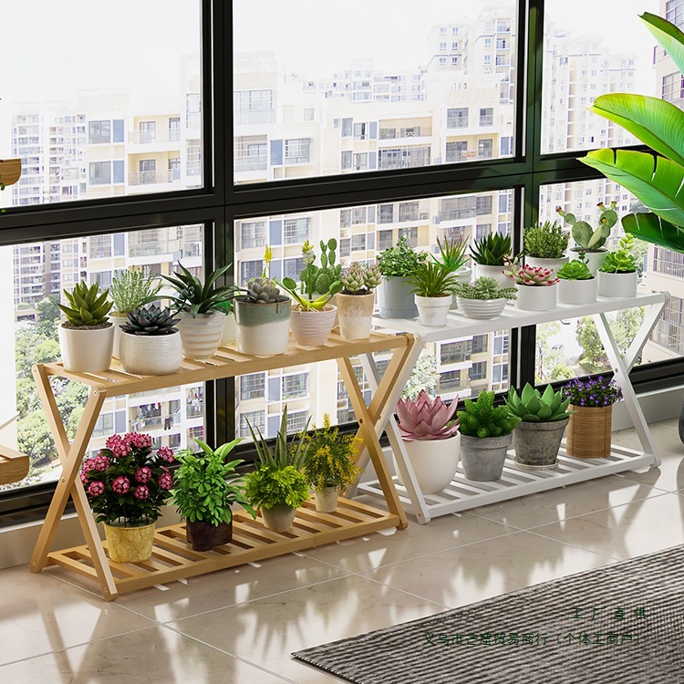 フラワーシェルフリビングルーム床置き収納ラックバルコニー装飾アレンジメント多肉植物ポット植物ディスプレイラック無垢材多層