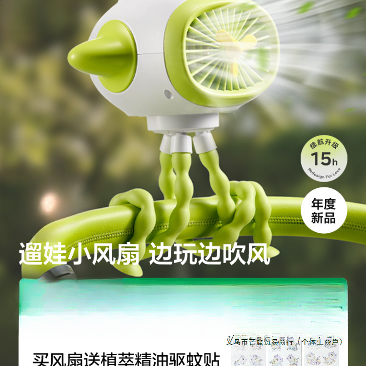 2025新型ベビーカーの扇風機八爪魚は携帯充電蚊よけを持って頭を振ってデスクトップの子供の宝に出かけます。