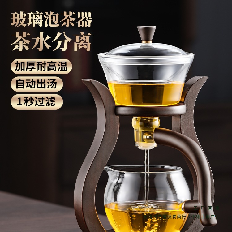 カンフーティーセット 2025 新しい家庭用ライト高級磁気吸引怠惰なティーガラスティーポットなし