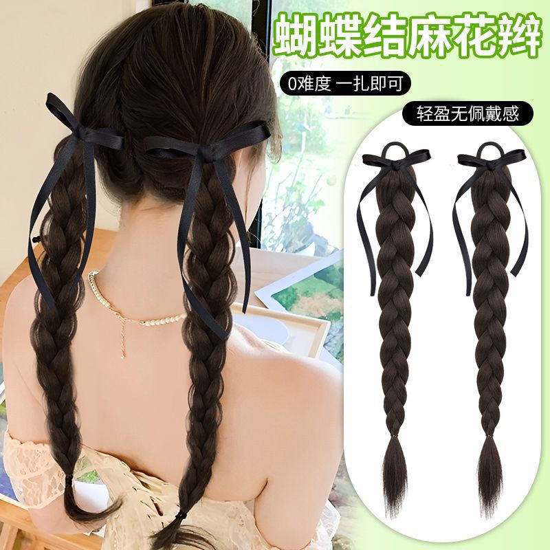 蝶結びのポニーテールの女性の麻花のお下げのネットの赤いバレエの風は自然なシミュレーションの髪の双ポニーテールのボクシングのお下げのポニーテールを編みます。