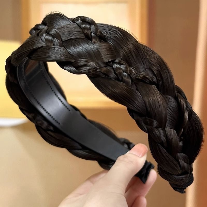 ヒョウタンのお下げの髪のカチューシャの女性の麻のお下げの編み物の5本のプラスの幅の手の花のお下げの高い頭のトップのカチューシャは年齢を減らします。