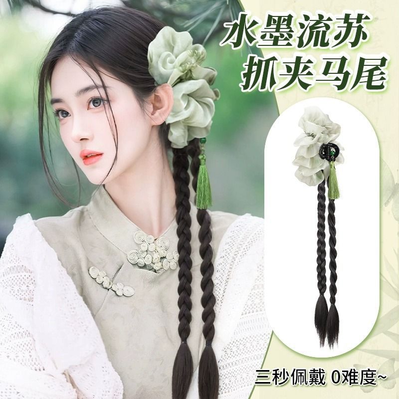 新しい中国式のかつらのお下げのポニーテールの女性の国風の麻の花の長いお下げのシミュレーションの側のねじれのお下げのネットの赤いボクシングのお下げの髪のタイプ