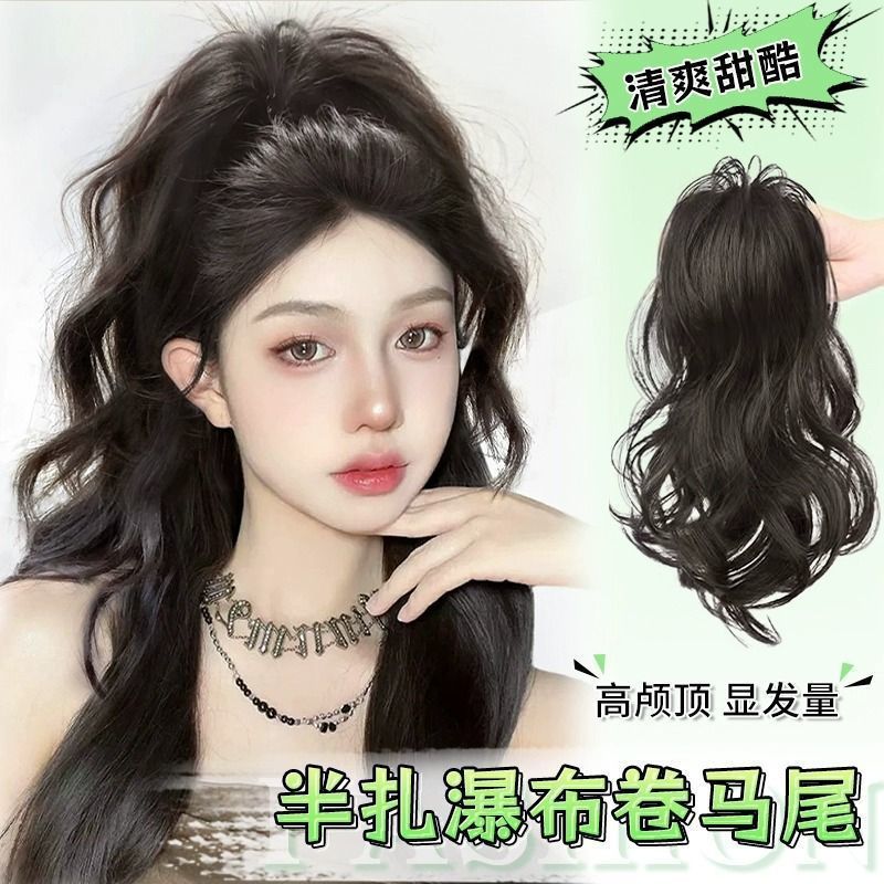 かつらの女性の長い髪のシミュレーション元気な少女の軽やかな無ペンダント感の半分は王女の滝のカールの高い馬尾のかつらを刺します。