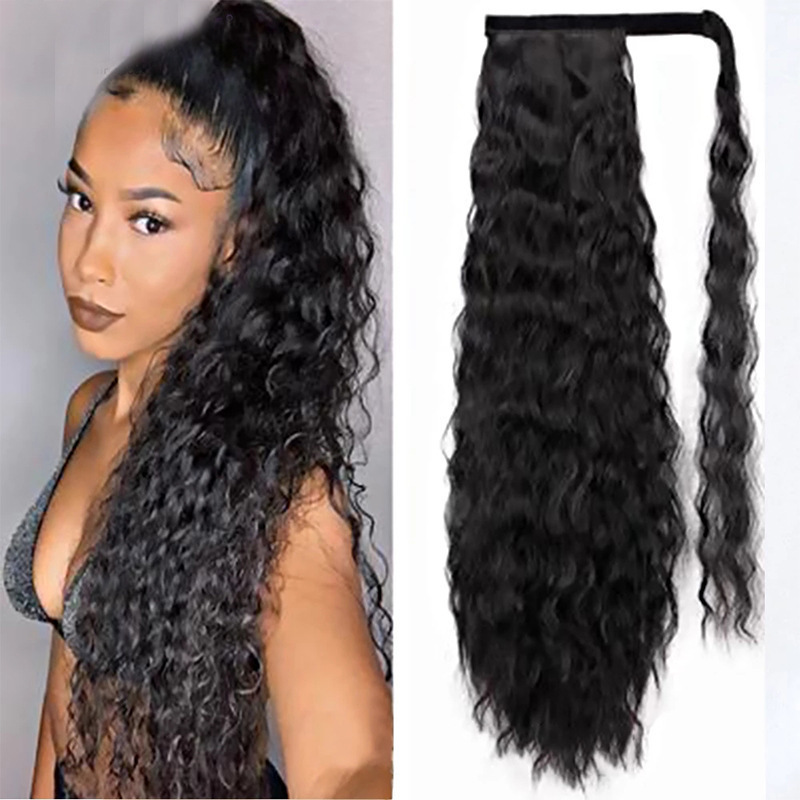 国境を越えた欧米の長い巻き髪の見えないマジックテープは、ふわふわしたトウモロコシのパーマウールのポニーテールのかつらをつないでいる