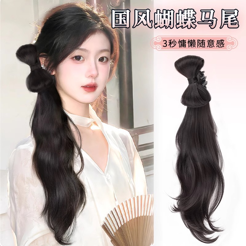 クリップ馬尾梨花巻シミュレーション髪がふわふわしてリアルな自然高温糸高束馬尾かつらスポット卸売り