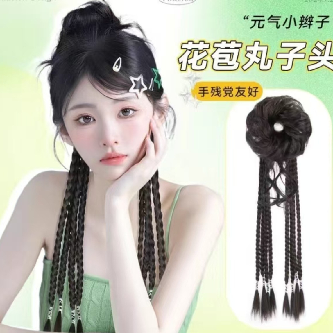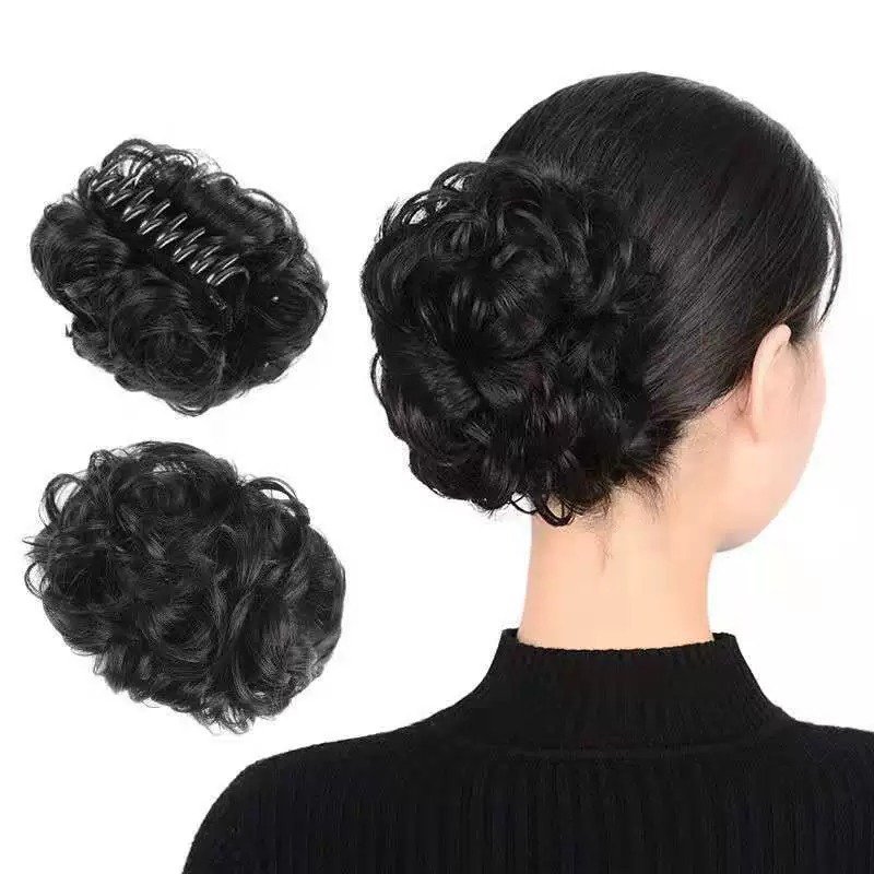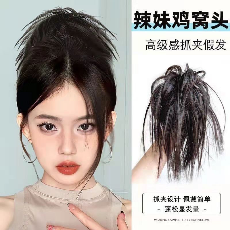 鶏の巣の団子の頭のかつらの包みの女性のシミュレーションの髪の怠け者の髪の神器の自然なふわふわしているネットの赤いギャルのかつらの髪の輪