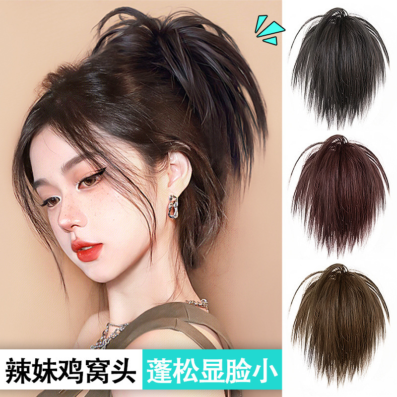 散らかった鶏の巣の頭の馬尾の団子の頭のかつらはギャルのパンク風の後頭部の百合の髪の形のかつらを包みます。