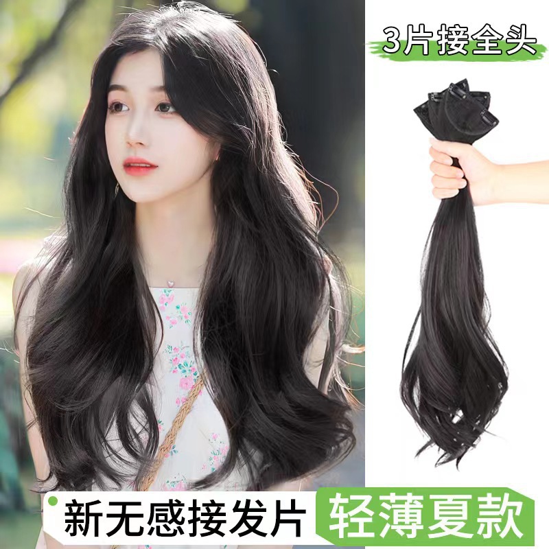 かつらの女性の長い髪の3枚のセットのカールの増加量のふわふわしている長い髪の1枚の板式の無傷のシミュレーションの髪の切れ
