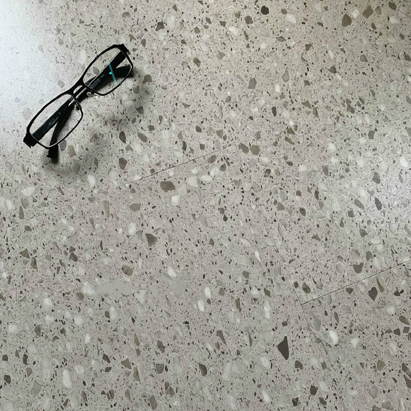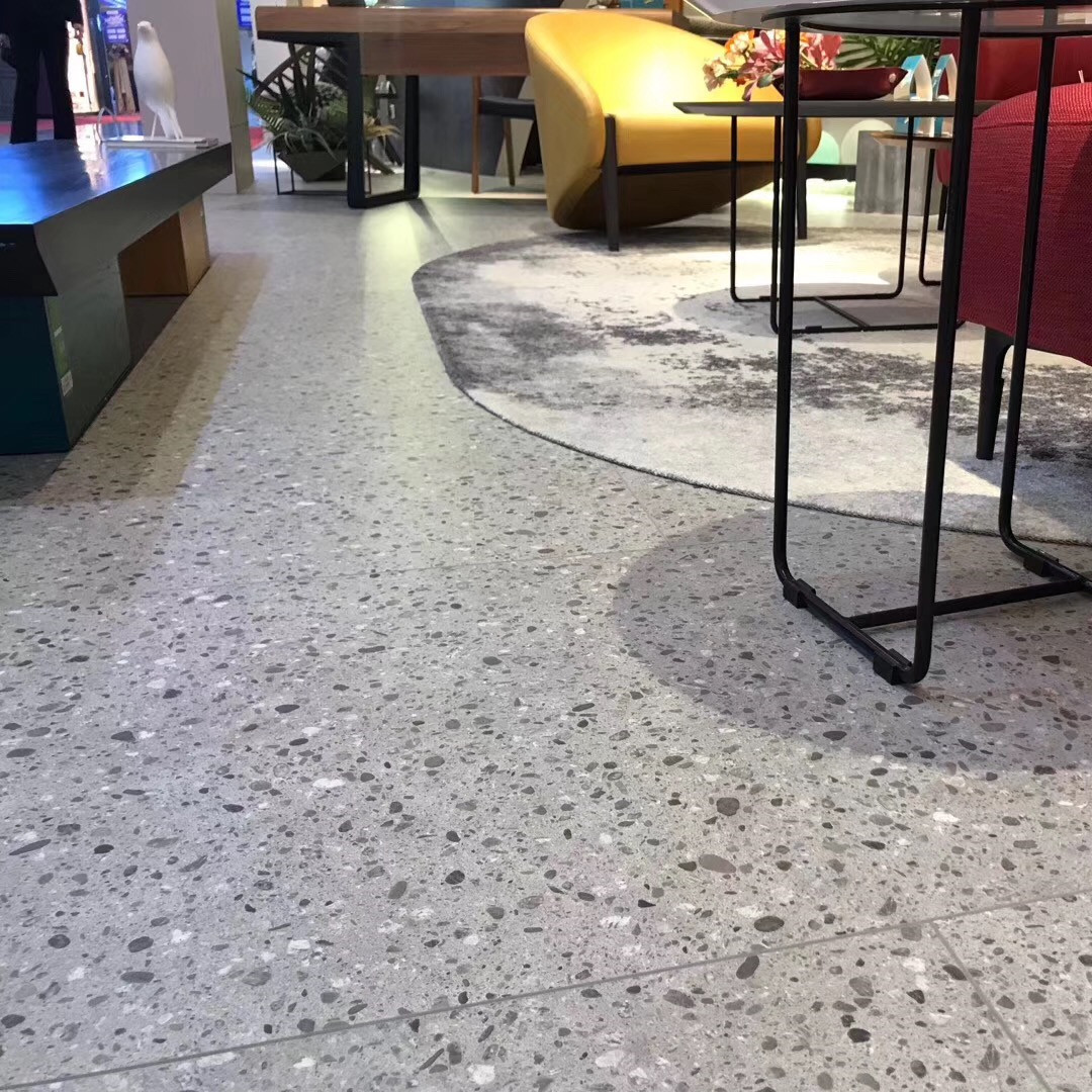 水磨石紋プラスチック床広東卸売りLVT床家具ショールーム店舗灰白色PVC地ゴムブロック