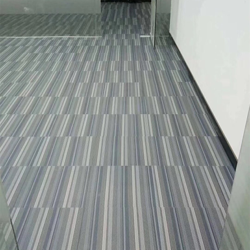 広東メーカー卸売り青灰白色横縞PVC地ゴムホテルオフィスブロックカーペット石プラスチック床