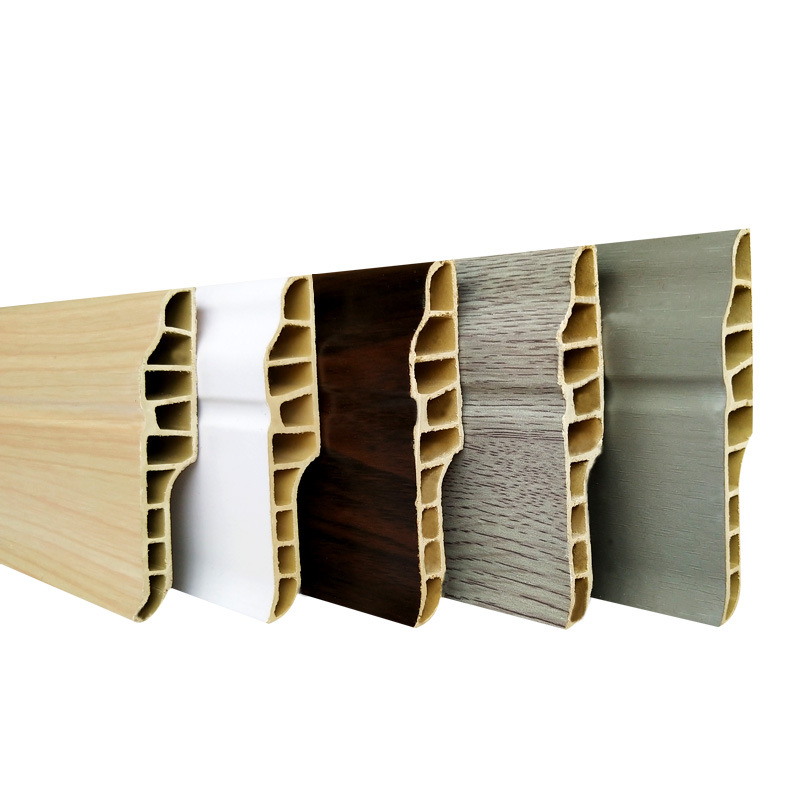 佛山卸売り工事プラスチック地脚線家装pvc蹴り板spc床壁角線木目白黒灰色