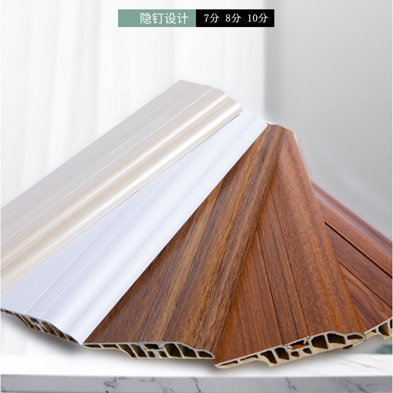佛山卸売り黒白色12分PVC地角線木目灰幅板防水隠れ釘プラスチック床線条