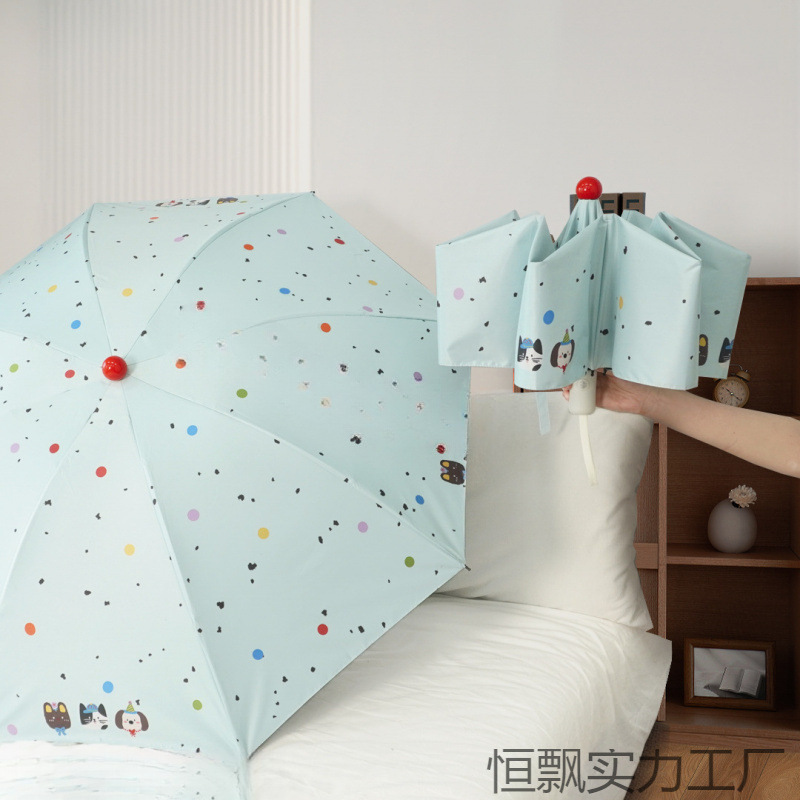 斑点のある子犬の日傘女性兼用インスタイル赤鼻自動日傘日焼け止め折りたたみ日傘かわいい