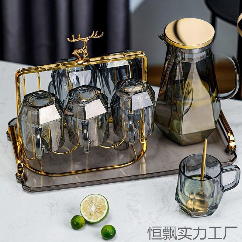 北欧高档冷水壶钻石高级感玻璃水杯家用套装客厅凉水壶轻奢耐高温
