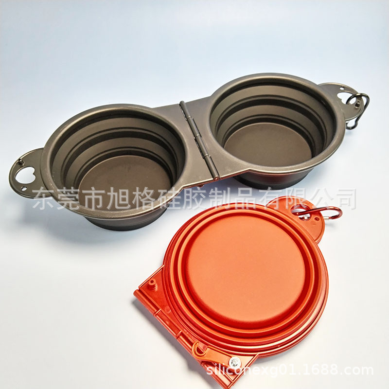 新しいダブルボウルシリコン折りたたみボウル屋外ポータブルシリコンペットボウル犬ボウル給餌ボウルペット用品卸売