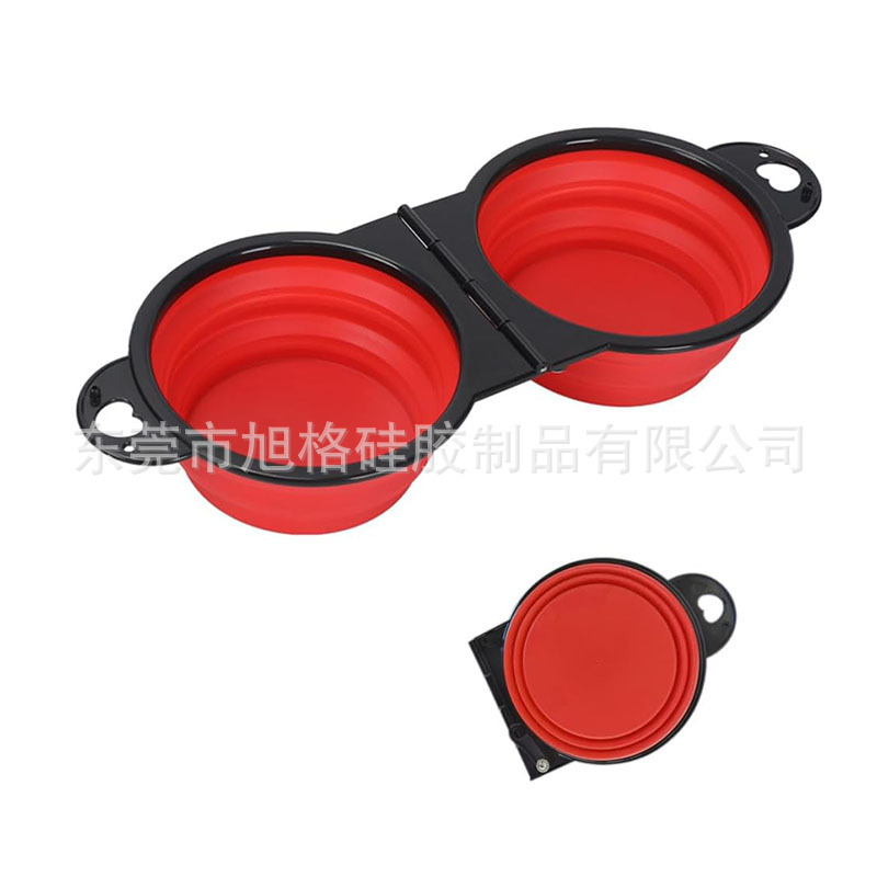 東莞メーカーのカスタマイズされたシリコンペットボウルダブルボウルシリコン犬ボウル折りたたみ式ポータブル犬給餌ボウル