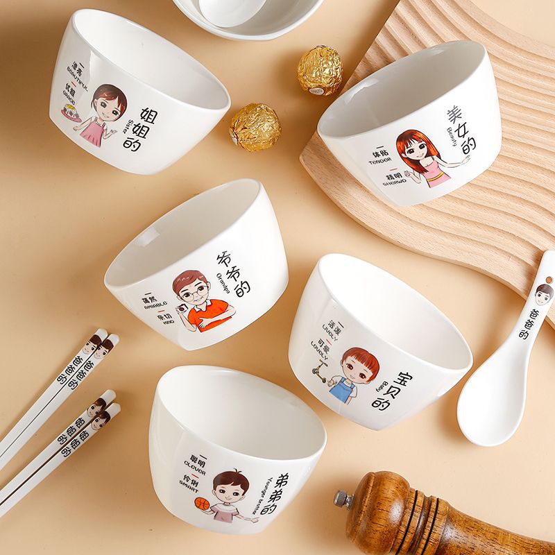 茶碗の家庭用親子茶碗の家庭は一家三四五六口の茶碗の家族の陶磁器食器の漫画セットを区別します。