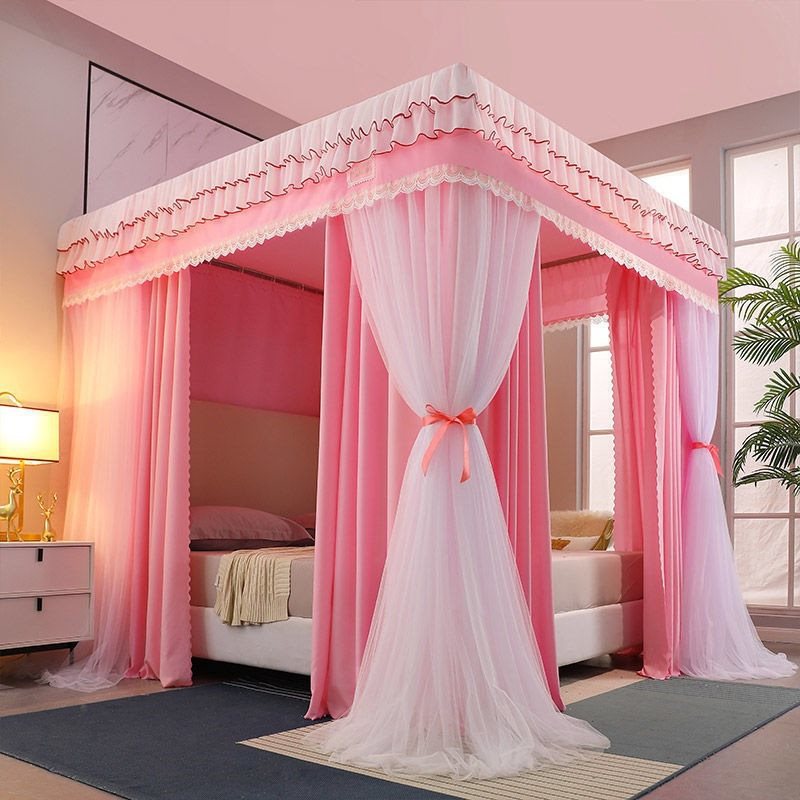 蚊帳の家庭用遮光床の二重の厚いベッドのカーテンのタイプのヨーロッパ式の双軌道の支柱の3つのドアの暗号化のベッドのカーテンは代行します。