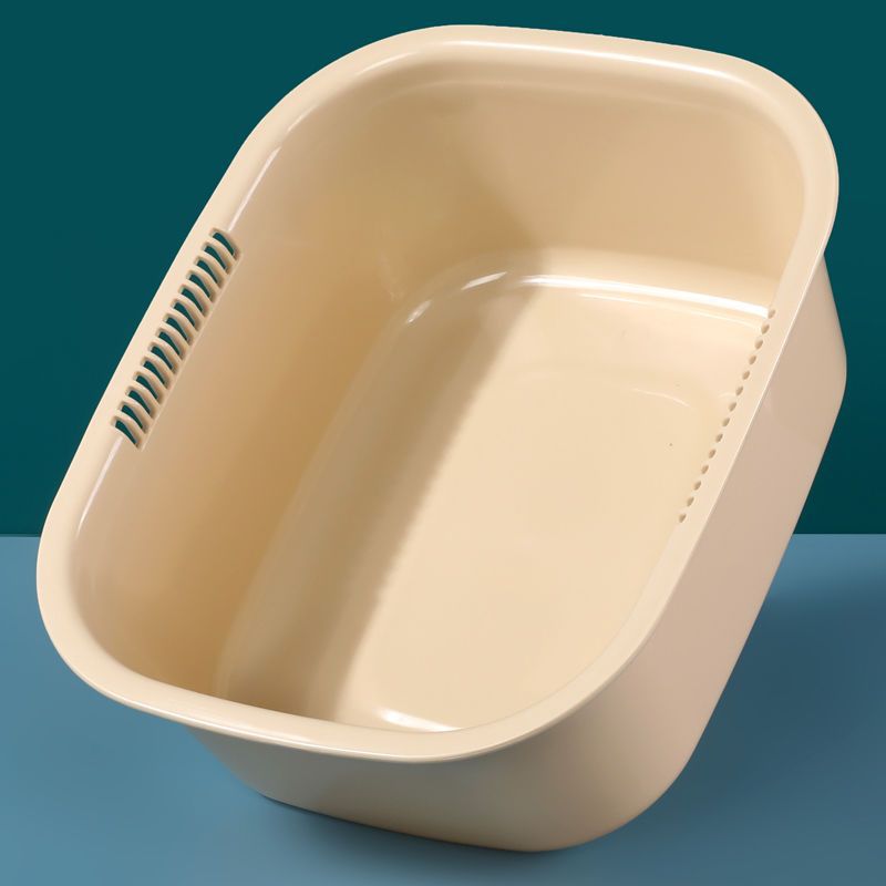 プラスチックの長方形のたらいを厚くして野菜を洗って台所のトイレを洗って洗面して洗濯します。