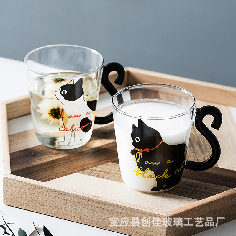 Ins白黒猫グラス家庭用クリエイティブ猫カップ朝食カップジュース牛乳カップ男性彼女カップルカップ