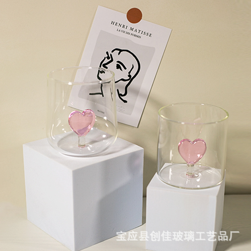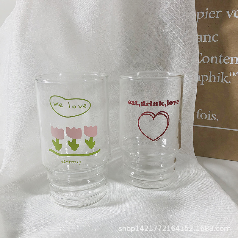 カップガラス透明insネット赤カップ家庭用クリエイティブグラスシンプル韓国式かわいいカスタムカップ