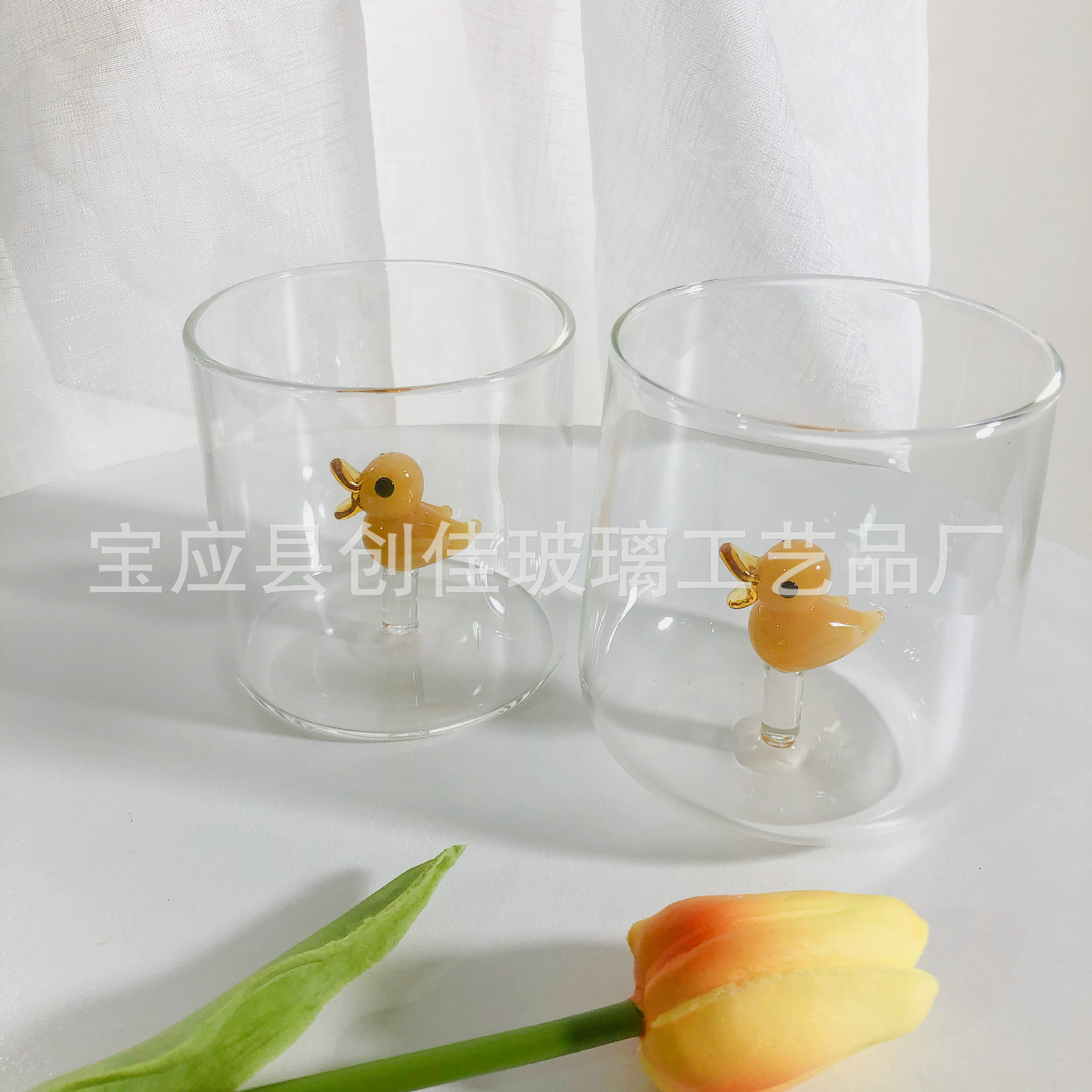 小黄鴨立体動物グラスコップins風クリエイティブグラスかわいい朝食カップ透明カスタムカップ
