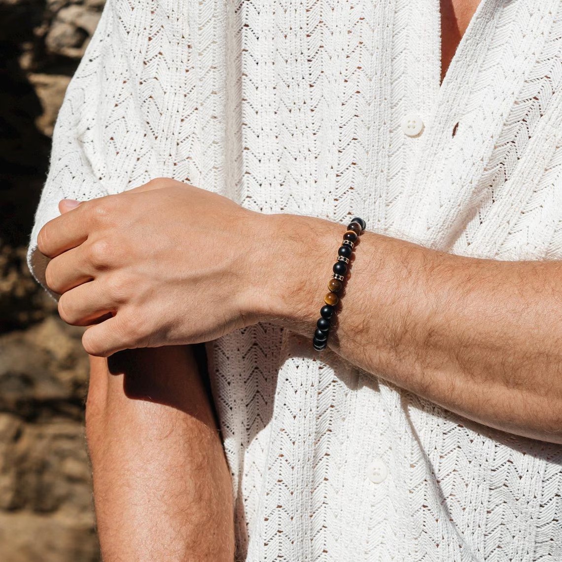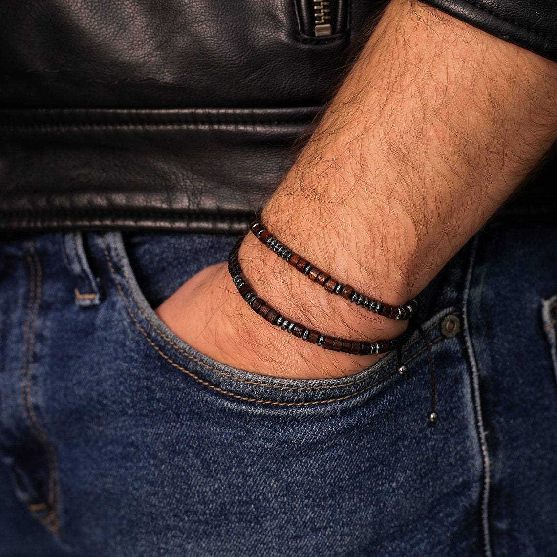 2025 ホットスタイル幾何学風矢印黒胆石手織りロープアマゾンクロスボーダーメンズハイエンド編みブレスレット
