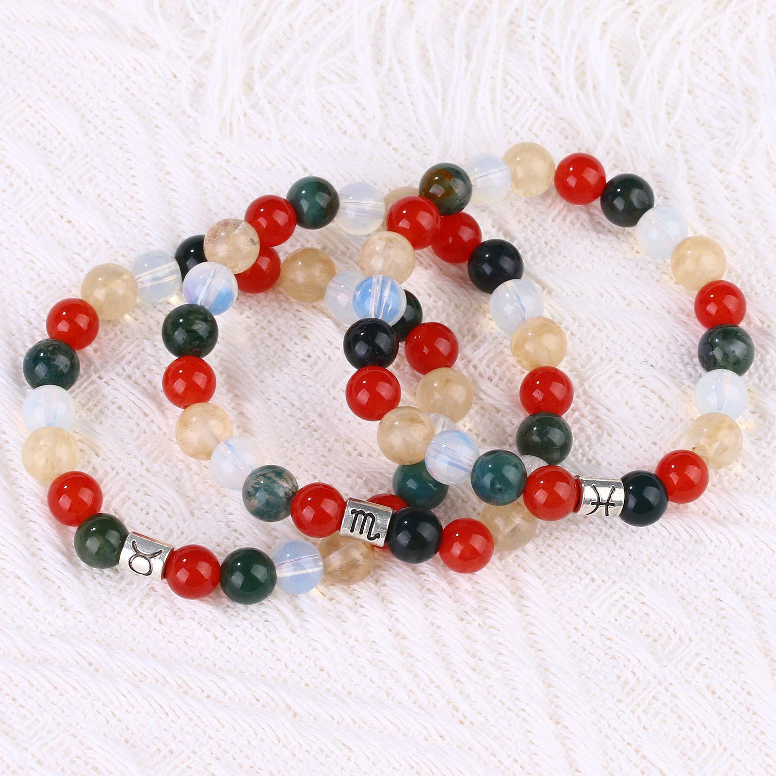 Amazonの人気天然石ミックスカラー瑪瑙クリスタルビーズブレスレットクロスボーダー12星座カップルブレスレット女性と男性用