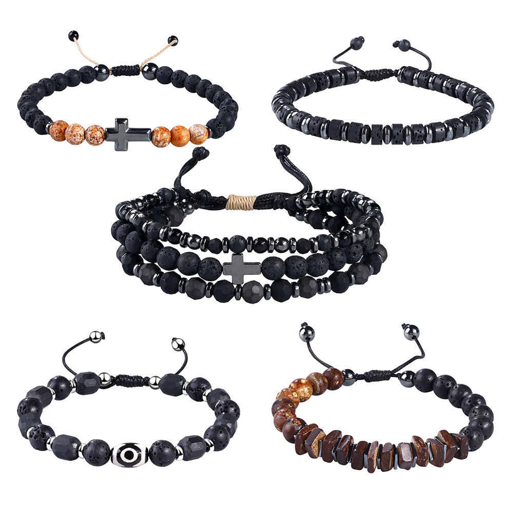 クロスボーダー起爆クロス手綱天然火山石黒胆石数珠編みブレスレットメンズ高級感手串