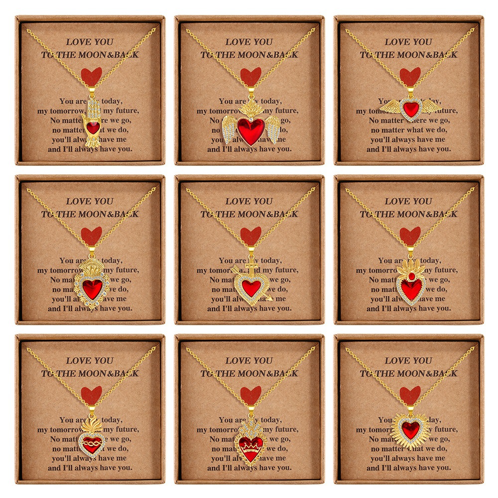 diy 銅金メッキ赤い愛のオイルドリップジュエリーアクセサリークロスジルコンレトロネックレスイヤリングペンダントペンダント